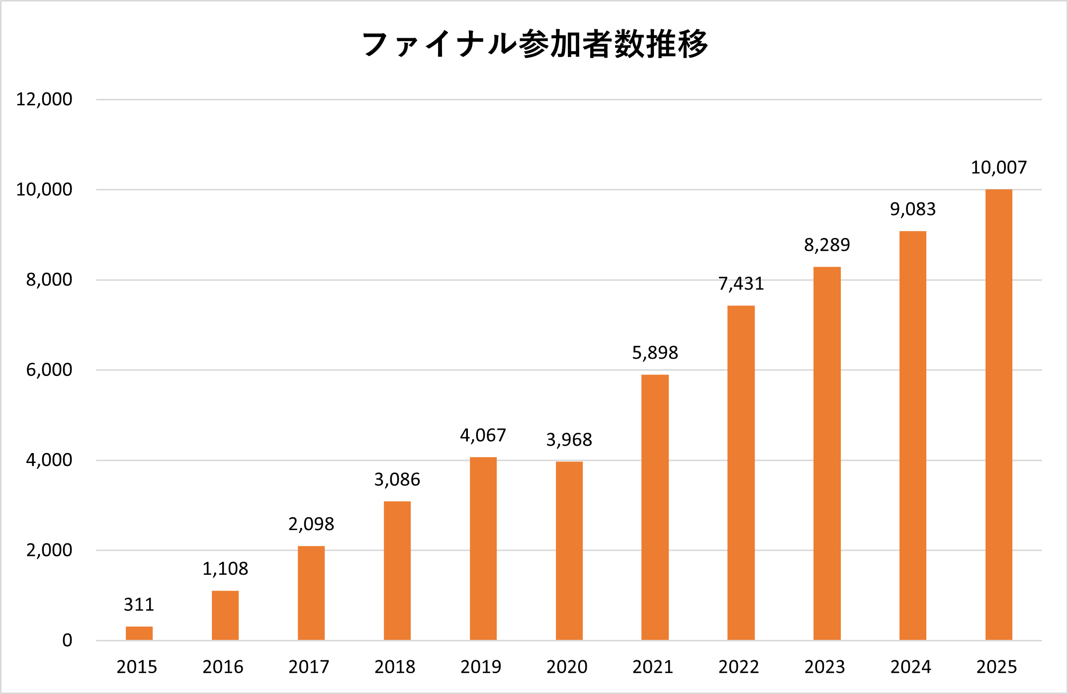 | ファイナル参加者数(※欠席者除く) | 10,007 名 |