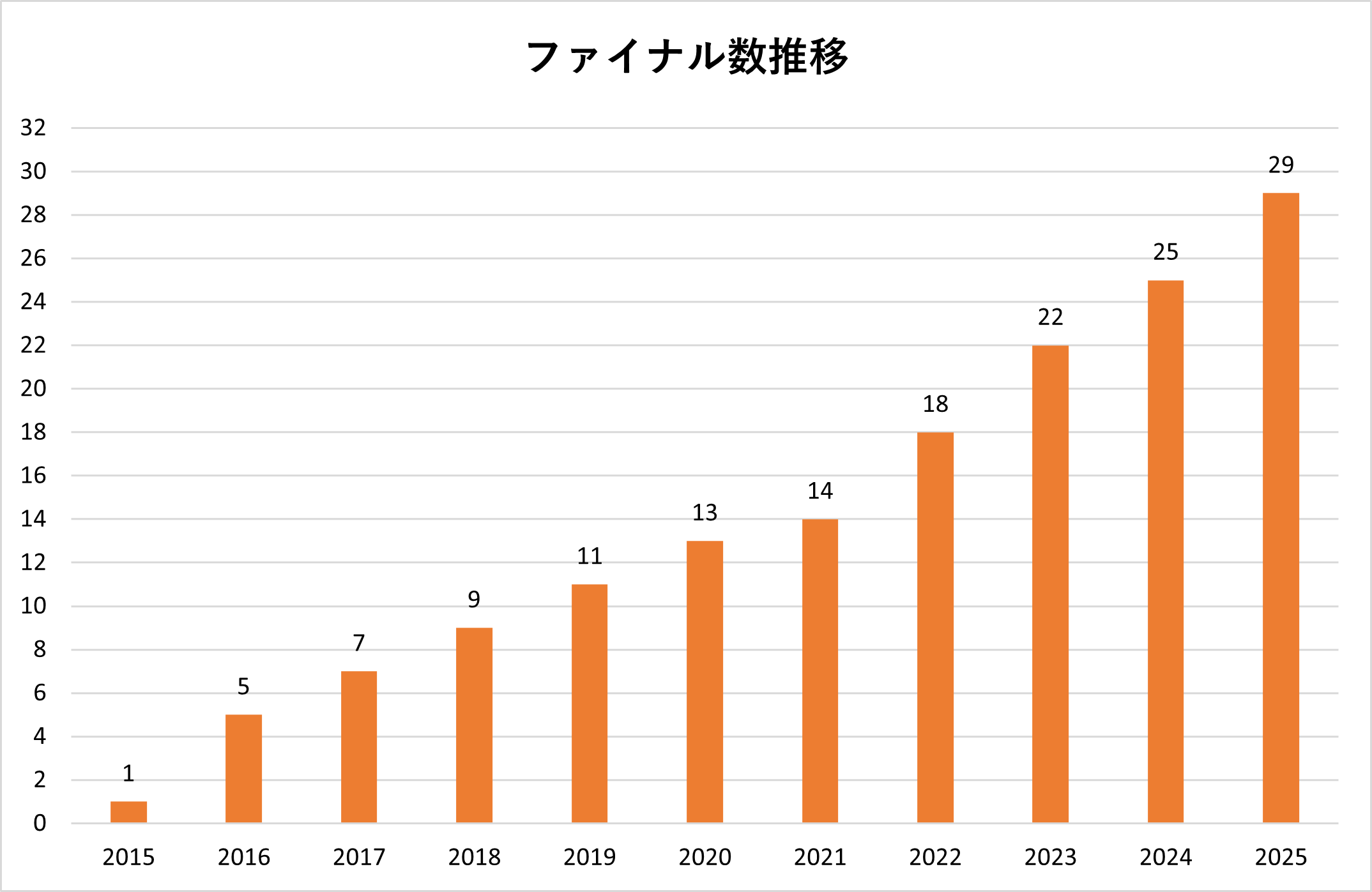 | ファイナル数 | 29 ファイナル |